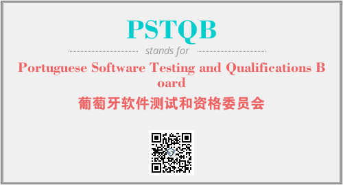 上述内容是“Portuguese Software Testing and Qualifications Board”作为“PSTQB”的缩写,解释为“葡萄牙软件测试和资格委员会”时的信息,以及英文缩略词PSTQB所代表的英文单词,其对应的中文拼音、详细解释以及在英文中的流行度和相关分类、应用领域及应用示例等。