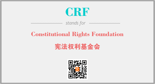 上述内容是“Constitutional Rights Foundation”作为“CRF”的缩写,解释为“宪法权利基金会”时的信息,以及英文缩略词CRF所代表的英文单词,其对应的中文拼音、详细解释以及在英文中的流行度和相关分类、应用领域及应用示例等。