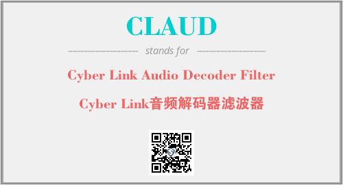 英文缩略词“CLAUD”经常作为“Cyber Link Audio Decoder Filter”的英文缩写来使用,中文表示:“Cyber Link音频解码器滤波器”。本文将详细介绍英文缩写词CLAUD所代表英文单词,其对应的中文拼音、详细解释以及在英语中的流行度。此外,还有关于缩略词CLAUD的分类、应用领域及相关应用示例等。