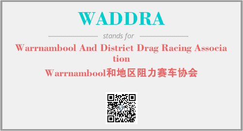 上述内容是“Warrnambool And District Drag Racing Association”作为“WADDRA”的缩写,解释为“Warrnambool和地区阻力赛车协会”时的信息,以及英文缩略词WADDRA所代表的英文单词,其对应的中文拼音、详细解释以及在英文中的流行度和相关分类、应用领域及应用示例等。