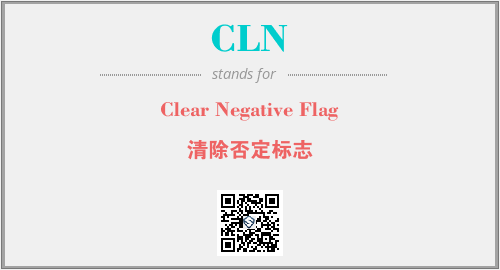 英文缩略词“CLN”经常作为“Clear Negative Flag”的英文缩写来使用,中文表示:“清除否定标志”。本文将详细介绍英文缩写词CLN所代表英文单词,其对应的中文拼音、详细解释以及在英语中的流行度。此外,还有关于缩略词CLN的分类、应用领域及相关应用示例等。