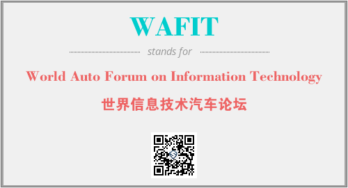 上述内容是“World Auto Forum on Information Technology”作为“WAFIT”的缩写,解释为“世界信息技术汽车论坛”时的信息,以及英文缩略词WAFIT所代表的英文单词,其对应的中文拼音、详细解释以及在英文中的流行度和相关分类、应用领域及应用示例等。