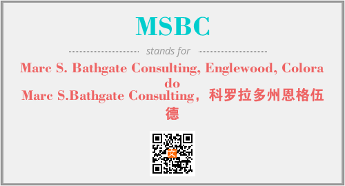 上述内容是“Marc S. Bathgate Consulting, Englewood, Colorado”作为“MSBC”的缩写,解释为“Marc S.Bathgate Consulting,科罗拉多州恩格伍德”时的信息,以及英文缩略词MSBC所代表的英文单词,其对应的中文拼音、详细解释以及在英文中的流行度和相关分类、应用领域及应用示例等。