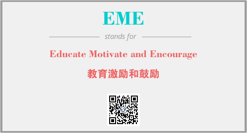 上述内容是“Educate Motivate and Encourage”作为“EME”的缩写,解释为“教育激励和鼓励”时的信息,以及英文缩略词EME所代表的英文单词,其对应的中文拼音、详细解释以及在英文中的流行度和相关分类、应用领域及应用示例等。