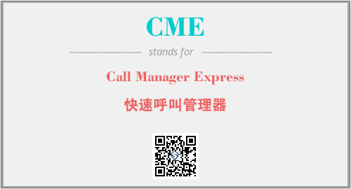 英文缩略词“CME”经常作为“Call Manager Express”的英文缩写来使用,中文表示:“快速呼叫管理器”。本文将详细介绍英文缩写词CME所代表英文单词,其对应的中文拼音、详细解释以及在英语中的流行度。此外,还有关于缩略词CME的分类、应用领域及相关应用示例等。