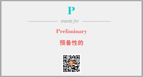 上述内容是“Preliminary”作为“P”的缩写,解释为“预备性的”时的信息,以及英文缩略词P所代表的英文单词,其对应的中文拼音、详细解释以及在英文中的流行度和相关分类、应用领域及应用示例等。
