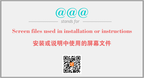 英文缩略词“@@@”经常作为“Screen files used in installation or instructions”的英文缩写来使用,中文表示:“安装或说明中使用的屏幕文件”。本文将详细介绍英文缩写词@@@所代表英文单词,其对应的中文拼音、详细解释以及在英语中的流行度。此外,还有关于缩略词@@@的分类、应用领域及相关应用示例等。