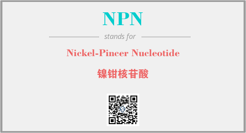 上述内容是“Nickel-Pincer Nucleotide”作为“NPN”的缩写,解释为“镍钳核苷酸”时的信息,以及英文缩略词NPN所代表的英文单词,其对应的中文拼音、详细解释以及在英文中的流行度和相关分类、应用领域及应用示例等。