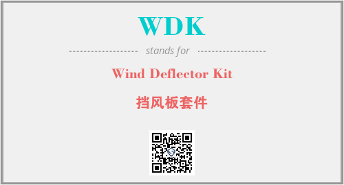 上述内容是“Wind Deflector Kit”作为“WDK”的缩写,解释为“挡风板套件”时的信息,以及英文缩略词WDK所代表的英文单词,其对应的中文拼音、详细解释以及在英文中的流行度和相关分类、应用领域及应用示例等。