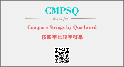 英文缩略词“CMPSQ”经常作为“Compare Strings by Quadword”的英文缩写来使用,中文表示:“按四字比较字符串”。本文将详细介绍英文缩写词CMPSQ所代表英文单词,其对应的中文拼音、详细解释以及在英语中的流行度。此外,还有关于缩略词CMPSQ的分类、应用领域及相关应用示例等。