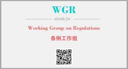 上述内容是“Working Group on Regulations”作为“WGR”的缩写,解释为“条例工作组”时的信息,以及英文缩略词WGR所代表的英文单词,其对应的中文拼音、详细解释以及在英文中的流行度和相关分类、应用领域及应用示例等。