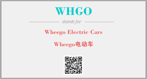 上述内容是“Wheego Electric Cars”作为“WHGO”的缩写,解释为“Wheego电动车”时的信息,以及英文缩略词WHGO所代表的英文单词,其对应的中文拼音、详细解释以及在英文中的流行度和相关分类、应用领域及应用示例等。