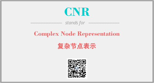 上述内容是“Complex Node Representation”作为“CNR”的缩写,解释为“复杂节点表示”时的信息,以及英文缩略词CNR所代表的英文单词,其对应的中文拼音、详细解释以及在英文中的流行度和相关分类、应用领域及应用示例等。