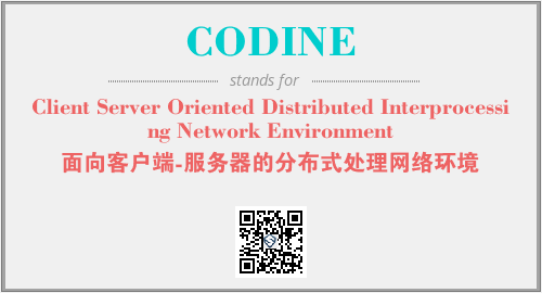 上述内容是“Client Server Oriented Distributed Interprocessing Network Environment”作为“CODINE”的缩写,解释为“面向客户端-服务器的分布式处理网络环境”时的信息,以及英文缩略词CODINE所代表的英文单词,其对应的中文拼音、详细解释以及在英文中的流行度和相关分类、应用领域及应用示例等。