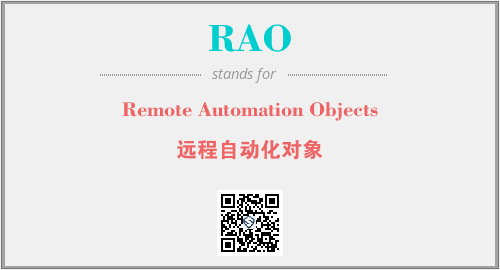 上述内容是“Remote Automation Objects”作为“RAO”的缩写,解释为“远程自动化对象”时的信息,以及英文缩略词RAO所代表的英文单词,其对应的中文拼音、详细解释以及在英文中的流行度和相关分类、应用领域及应用示例等。