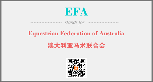 上述内容是“Equestrian Federation of Australia”作为“EFA”的缩写,解释为“澳大利亚马术联合会”时的信息,以及英文缩略词EFA所代表的英文单词,其对应的中文拼音、详细解释以及在英文中的流行度和相关分类、应用领域及应用示例等。