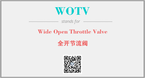 以上为Wide Open Throttle Valve英文缩略词WOTV的中文解释,以及该英文缩写在英语的流行度、分类和应用领域方面的信息。