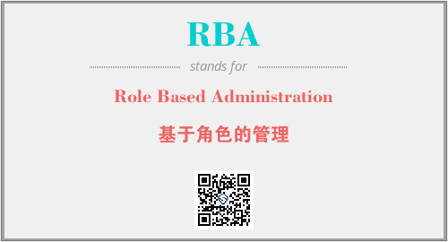英文缩略词“RBA”经常作为“Role Based Administration”的英文缩写来使用,中文表示:“基于角色的管理”。本文将详细介绍英文缩写词RBA所代表英文单词,其对应的中文拼音、详细解释以及在英语中的流行度。此外,还有关于缩略词RBA的分类、应用领域及相关应用示例等。