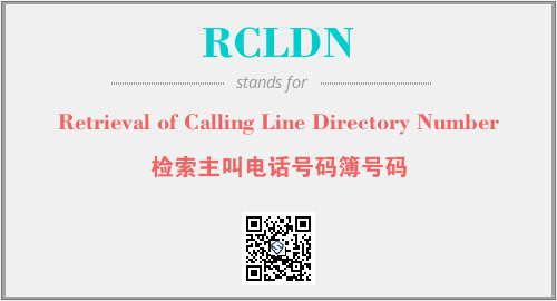 英文缩略词“RCLDN”经常作为“Retrieval of Calling Line Directory Number”的英文缩写来使用,中文表示:“检索主叫电话号码簿号码”。本文将详细介绍英文缩写词RCLDN所代表英文单词,其对应的中文拼音、详细解释以及在英语中的流行度。此外,还有关于缩略词RCLDN的分类、应用领域及相关应用示例等。