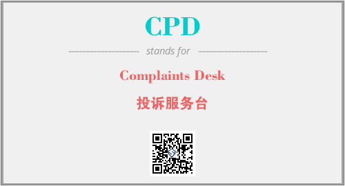 英文缩略词“CPD”经常作为“Complaints Desk”的英文缩写来使用,中文表示:“投诉服务台”。本文将详细介绍英文缩写词CPD所代表英文单词,其对应的中文拼音、详细解释以及在英语中的流行度。此外,还有关于缩略词CPD的分类、应用领域及相关应用示例等。