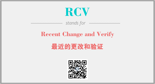 上述内容是“Recent Change and Verify”作为“RCV”的缩写,解释为“最近的更改和验证”时的信息,以及英文缩略词RCV所代表的英文单词,其对应的中文拼音、详细解释以及在英文中的流行度和相关分类、应用领域及应用示例等。