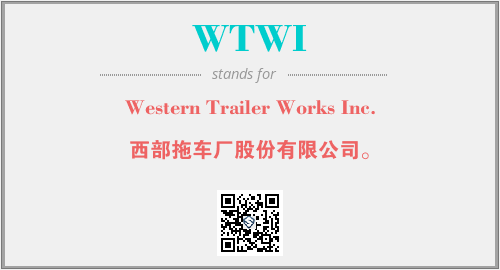 上述内容是“Western Trailer Works Inc.”作为“WTWI”的缩写,解释为“西部拖车厂股份有限公司。”时的信息,以及英文缩略词WTWI所代表的英文单词,其对应的中文拼音、详细解释以及在英文中的流行度和相关分类、应用领域及应用示例等。