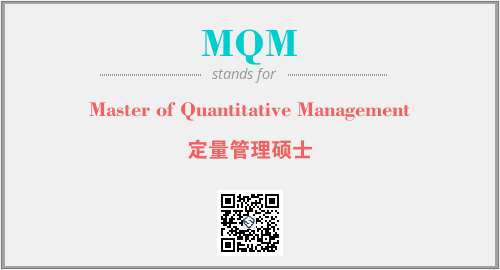 英文缩略词“MQM”经常作为“Master of Quantitative Management”的英文缩写来使用,中文表示:“定量管理硕士”。本文将详细介绍英文缩写词MQM所代表英文单词,其对应的中文拼音、详细解释以及在英语中的流行度。此外,还有关于缩略词MQM的分类、应用领域及相关应用示例等。