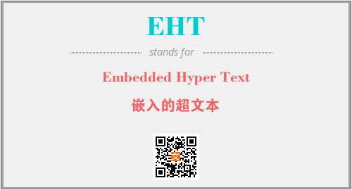 上述内容是“Embedded Hyper Text”作为“EHT”的缩写,解释为“嵌入的超文本”时的信息,以及英文缩略词EHT所代表的英文单词,其对应的中文拼音、详细解释以及在英文中的流行度和相关分类、应用领域及应用示例等。