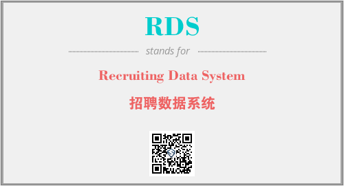 英文缩略词“RDS”经常作为“Recruiting Data System”的英文缩写来使用,中文表示:“招聘数据系统”。本文将详细介绍英文缩写词RDS所代表英文单词,其对应的中文拼音、详细解释以及在英语中的流行度。此外,还有关于缩略词RDS的分类、应用领域及相关应用示例等。