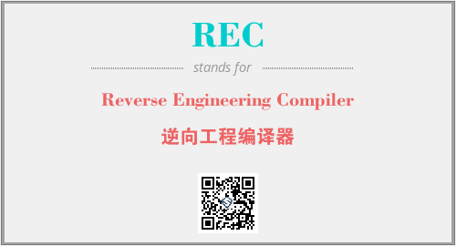 英文缩略词“REC”经常作为“Reverse Engineering Compiler”的英文缩写来使用,中文表示:“逆向工程编译器”。本文将详细介绍英文缩写词REC所代表英文单词,其对应的中文拼音、详细解释以及在英语中的流行度。此外,还有关于缩略词REC的分类、应用领域及相关应用示例等。