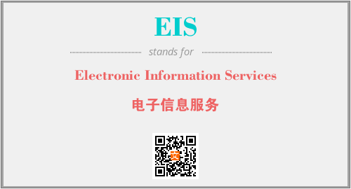 英文缩略词“EIS”经常作为“Electronic Information Services”的英文缩写来使用,中文表示:“电子信息服务”。本文将详细介绍英文缩写词EIS所代表英文单词,其对应的中文拼音、详细解释以及在英语中的流行度。此外,还有关于缩略词EIS的分类、应用领域及相关应用示例等。