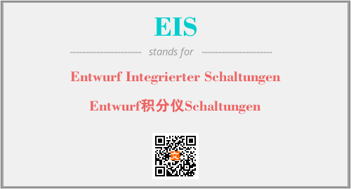 英文缩略词“EIS”经常作为“Entwurf Integrierter Schaltungen”的英文缩写来使用,中文表示:“Entwurf积分仪Schaltungen”。本文将详细介绍英文缩写词EIS所代表英文单词,其对应的中文拼音、详细解释以及在英语中的流行度。此外,还有关于缩略词EIS的分类、应用领域及相关应用示例等。