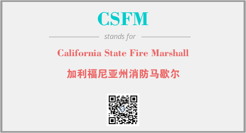 英文缩略词“CSFM”经常作为“California State Fire Marshall”的英文缩写来使用,中文表示:“加利福尼亚州消防马歇尔”。本文将详细介绍英文缩写词CSFM所代表英文单词,其对应的中文拼音、详细解释以及在英语中的流行度。此外,还有关于缩略词CSFM的分类、应用领域及相关应用示例等。