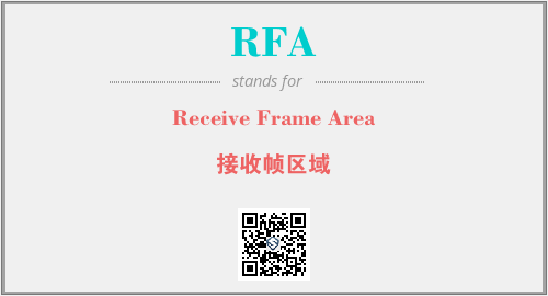 上述内容是“Receive Frame Area”作为“RFA”的缩写,解释为“接收帧区域”时的信息,以及英文缩略词RFA所代表的英文单词,其对应的中文拼音、详细解释以及在英文中的流行度和相关分类、应用领域及应用示例等。