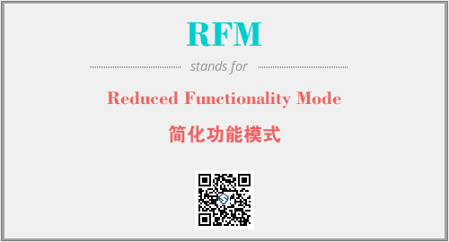 英文缩略词“RFM”经常作为“Reduced Functionality Mode”的英文缩写来使用,中文表示:“简化功能模式”。本文将详细介绍英文缩写词RFM所代表英文单词,其对应的中文拼音、详细解释以及在英语中的流行度。此外,还有关于缩略词RFM的分类、应用领域及相关应用示例等。