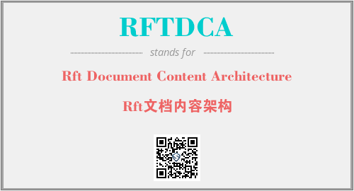 上述内容是“Rft Document Content Architecture”作为“RFTDCA”的缩写,解释为“Rft文档内容架构”时的信息,以及英文缩略词RFTDCA所代表的英文单词,其对应的中文拼音、详细解释以及在英文中的流行度和相关分类、应用领域及应用示例等。