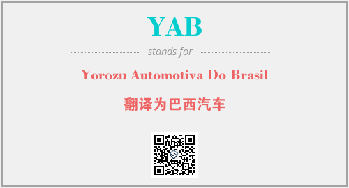 上述内容是“Yorozu Automotiva Do Brasil”作为“YAB”的缩写,解释为“翻译为巴西汽车”时的信息,以及英文缩略词YAB所代表的英文单词,其对应的中文拼音、详细解释以及在英文中的流行度和相关分类、应用领域及应用示例等。
