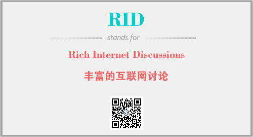 英文缩略词“RID”经常作为“Rich Internet Discussions”的英文缩写来使用,中文表示:“丰富的互联网讨论”。本文将详细介绍英文缩写词RID所代表英文单词,其对应的中文拼音、详细解释以及在英语中的流行度。此外,还有关于缩略词RID的分类、应用领域及相关应用示例等。