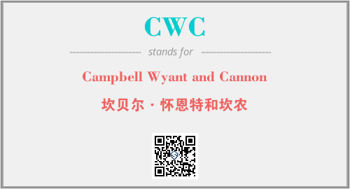 上述内容是“Campbell Wyant and Cannon”作为“CWC”的缩写,解释为“坎贝尔·怀恩特和坎农”时的信息,以及英文缩略词CWC所代表的英文单词,其对应的中文拼音、详细解释以及在英文中的流行度和相关分类、应用领域及应用示例等。