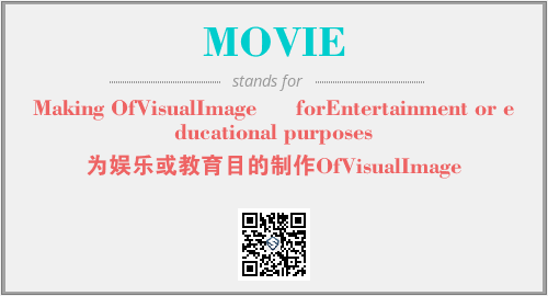 英文缩略词“MOVIE”经常作为“Making OfVisualImage forEntertainment or educational purposes”的英文缩写来使用,中文表示:“为娱乐或教育目的制作OfVisualImage”。本文将详细介绍英文缩写词MOVIE所代表英文单词,其对应的中文拼音、详细解释以及在英语中的流行度。此外,还有关于缩略词MOVIE的分类、应用领域及相关应用示例等。