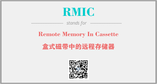 英文缩略词“RMIC”经常作为“Remote Memory In Cassette”的英文缩写来使用,中文表示:“盒式磁带中的远程存储器”。本文将详细介绍英文缩写词RMIC所代表英文单词,其对应的中文拼音、详细解释以及在英语中的流行度。此外,还有关于缩略词RMIC的分类、应用领域及相关应用示例等。