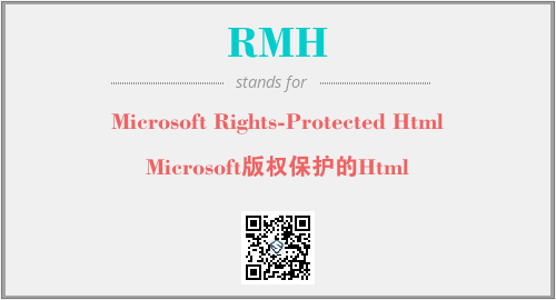 英文缩略词“RMH”经常作为“Microsoft Rights-Protected Html”的英文缩写来使用,中文表示:“Microsoft版权保护的Html”。本文将详细介绍英文缩写词RMH所代表英文单词,其对应的中文拼音、详细解释以及在英语中的流行度。此外,还有关于缩略词RMH的分类、应用领域及相关应用示例等。