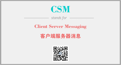 英文缩略词“CSM”经常作为“Client Server Messaging”的英文缩写来使用,中文表示:“客户端服务器消息”。本文将详细介绍英文缩写词CSM所代表英文单词,其对应的中文拼音、详细解释以及在英语中的流行度。此外,还有关于缩略词CSM的分类、应用领域及相关应用示例等。