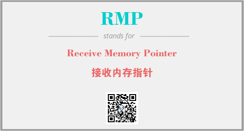 英文缩略词“RMP”经常作为“Receive Memory Pointer”的英文缩写来使用,中文表示:“接收内存指针”。本文将详细介绍英文缩写词RMP所代表英文单词,其对应的中文拼音、详细解释以及在英语中的流行度。此外,还有关于缩略词RMP的分类、应用领域及相关应用示例等。