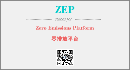 英文缩略词“ZEP”经常作为“Zero Emissions Platform”的英文缩写来使用,中文表示:“零排放平台”。本文将详细介绍英文缩写词ZEP所代表英文单词,其对应的中文拼音、详细解释以及在英语中的流行度。此外,还有关于缩略词ZEP的分类、应用领域及相关应用示例等。