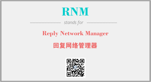 上述内容是“Reply Network Manager”作为“RNM”的缩写,解释为“回复网络管理器”时的信息,以及英文缩略词RNM所代表的英文单词,其对应的中文拼音、详细解释以及在英文中的流行度和相关分类、应用领域及应用示例等。