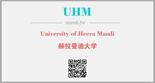 英文缩略词“UHM”经常作为“University of Heera Mandi”的英文缩写来使用,中文表示:“赫拉曼迪大学”。本文将详细介绍英文缩写词UHM所代表英文单词,其对应的中文拼音、详细解释以及在英语中的流行度。此外,还有关于缩略词UHM的分类、应用领域及相关应用示例等。