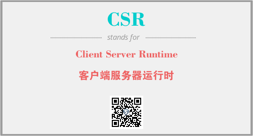 上述内容是“Client Server Runtime”作为“CSR”的缩写,解释为“客户端服务器运行时”时的信息,以及英文缩略词CSR所代表的英文单词,其对应的中文拼音、详细解释以及在英文中的流行度和相关分类、应用领域及应用示例等。