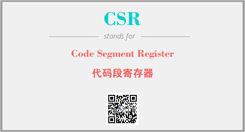 英文缩略词“CSR”经常作为“Code Segment Register”的英文缩写来使用,中文表示:“代码段寄存器”。本文将详细介绍英文缩写词CSR所代表英文单词,其对应的中文拼音、详细解释以及在英语中的流行度。此外,还有关于缩略词CSR的分类、应用领域及相关应用示例等。