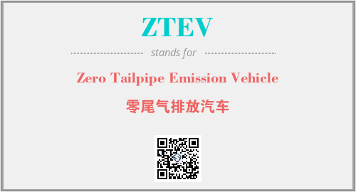 上述内容是“Zero Tailpipe Emission Vehicle”作为“ZTEV”的缩写,解释为“零尾气排放汽车”时的信息,以及英文缩略词ZTEV所代表的英文单词,其对应的中文拼音、详细解释以及在英文中的流行度和相关分类、应用领域及应用示例等。